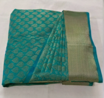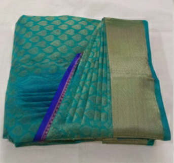 Saree is folded into a compact, travel-friendly shape. Perfect for destination weddings.